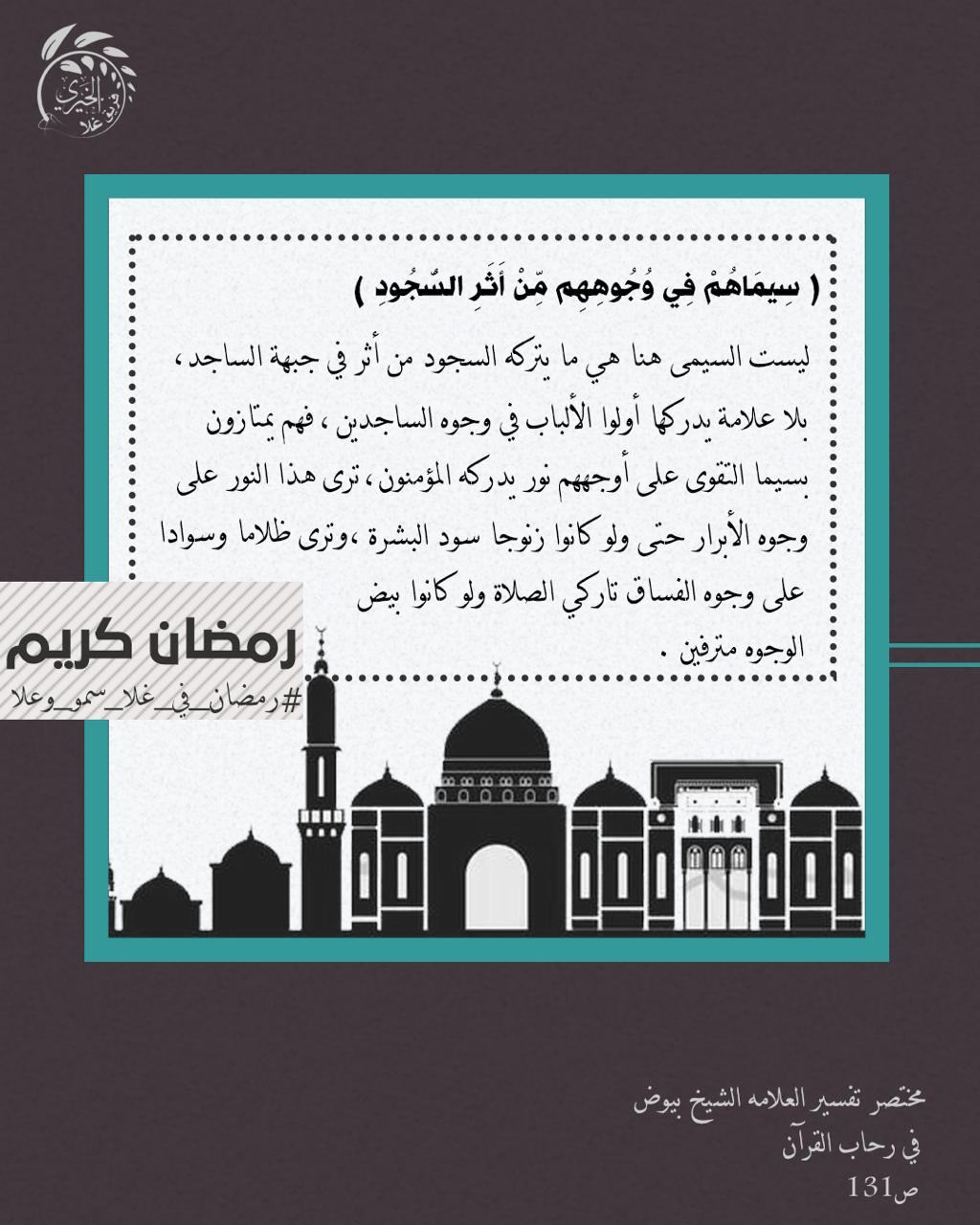 فريق غلا الخيري A Twitter وقفة من وقفات الآية المباركة سيماهم في وجوههم من أثر السجود رمضان في غلا سمو وعلا رمضان كريم
