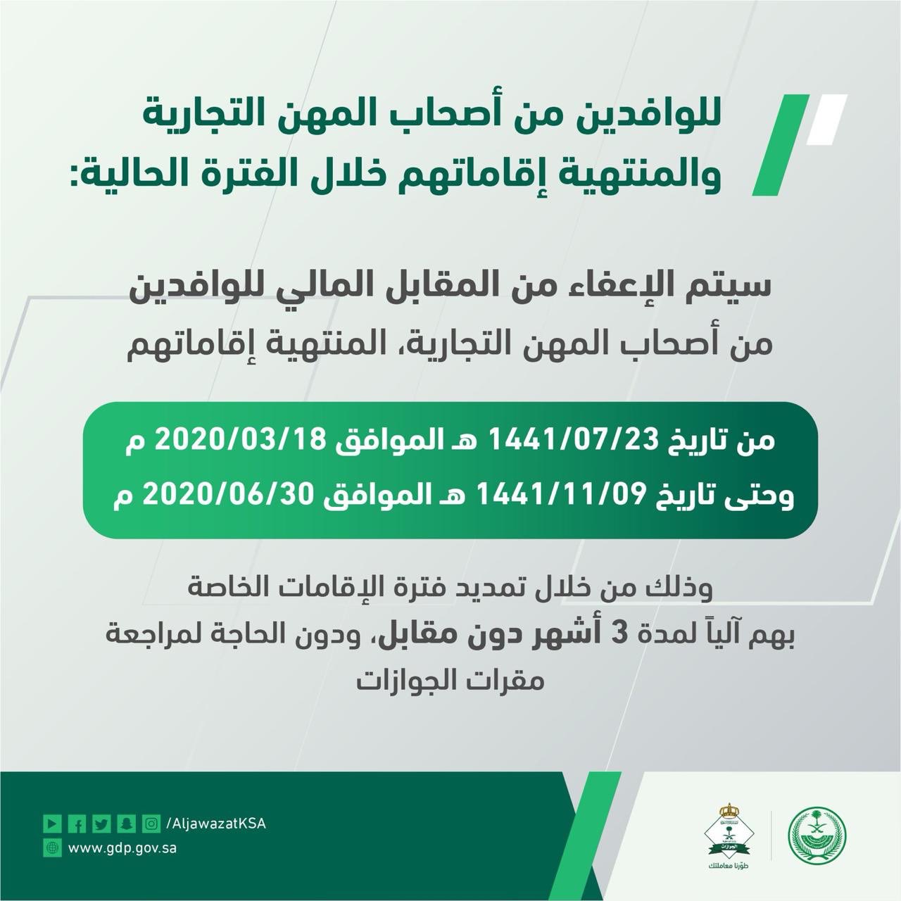 الجوازات السعودية On Twitter إنفاذا لتوجيهات خادم الحرمين الشريفين للتعامل مع تداعيات جائحة كورونا المستجد ومنع تفشي الفيروس الجوازات تبدأ بتمديد هوية مقيم آلي ا للوافدين داخل وخارج السعودية وذلك لمدة 3 أشهر ودون مقابل