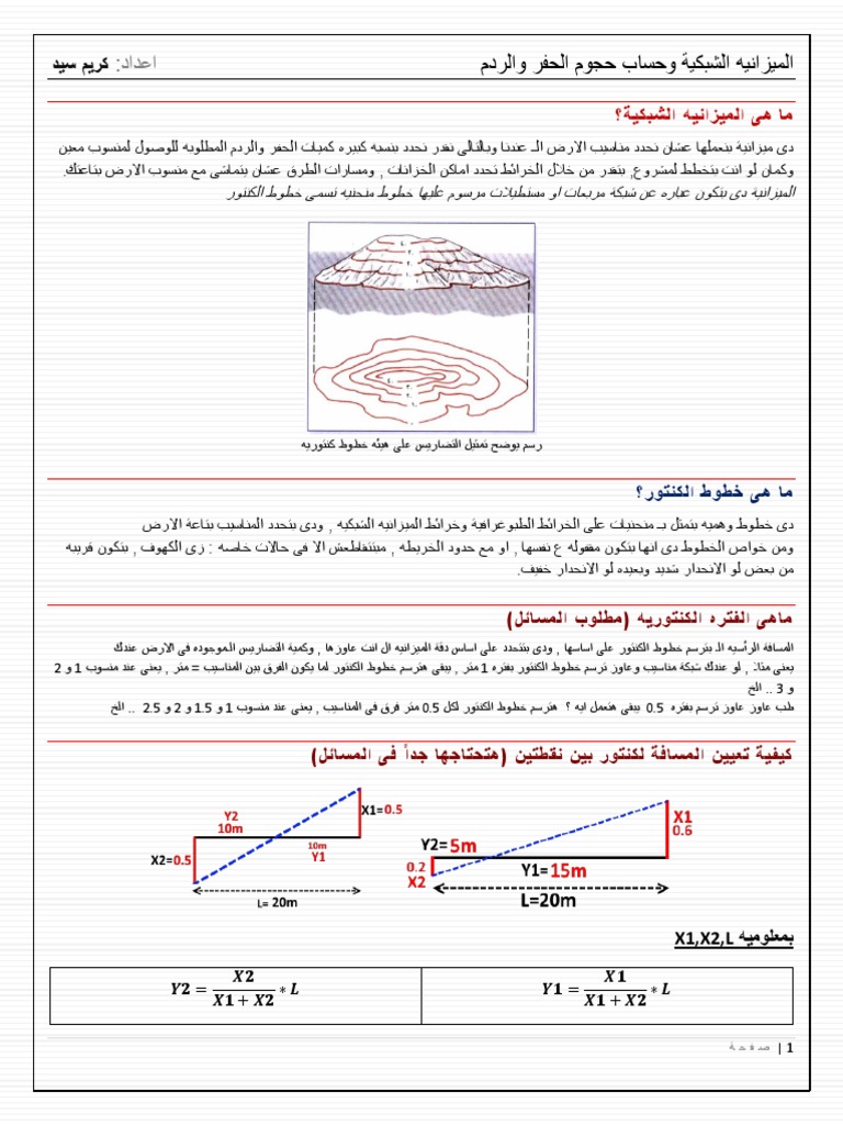 الميزانيه الشبكية وحساب حجوم الحفر والردم