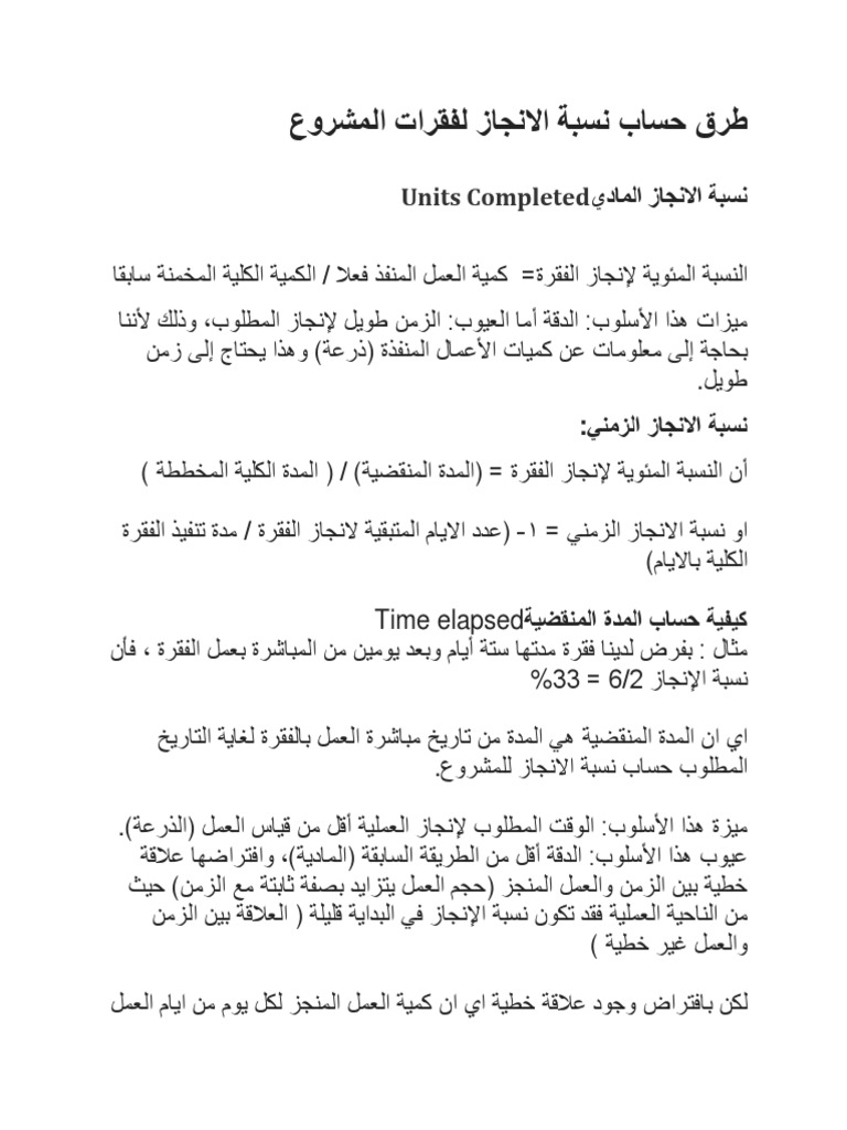 طرق حساب نسبة الانجاز لفقرات المشروع
